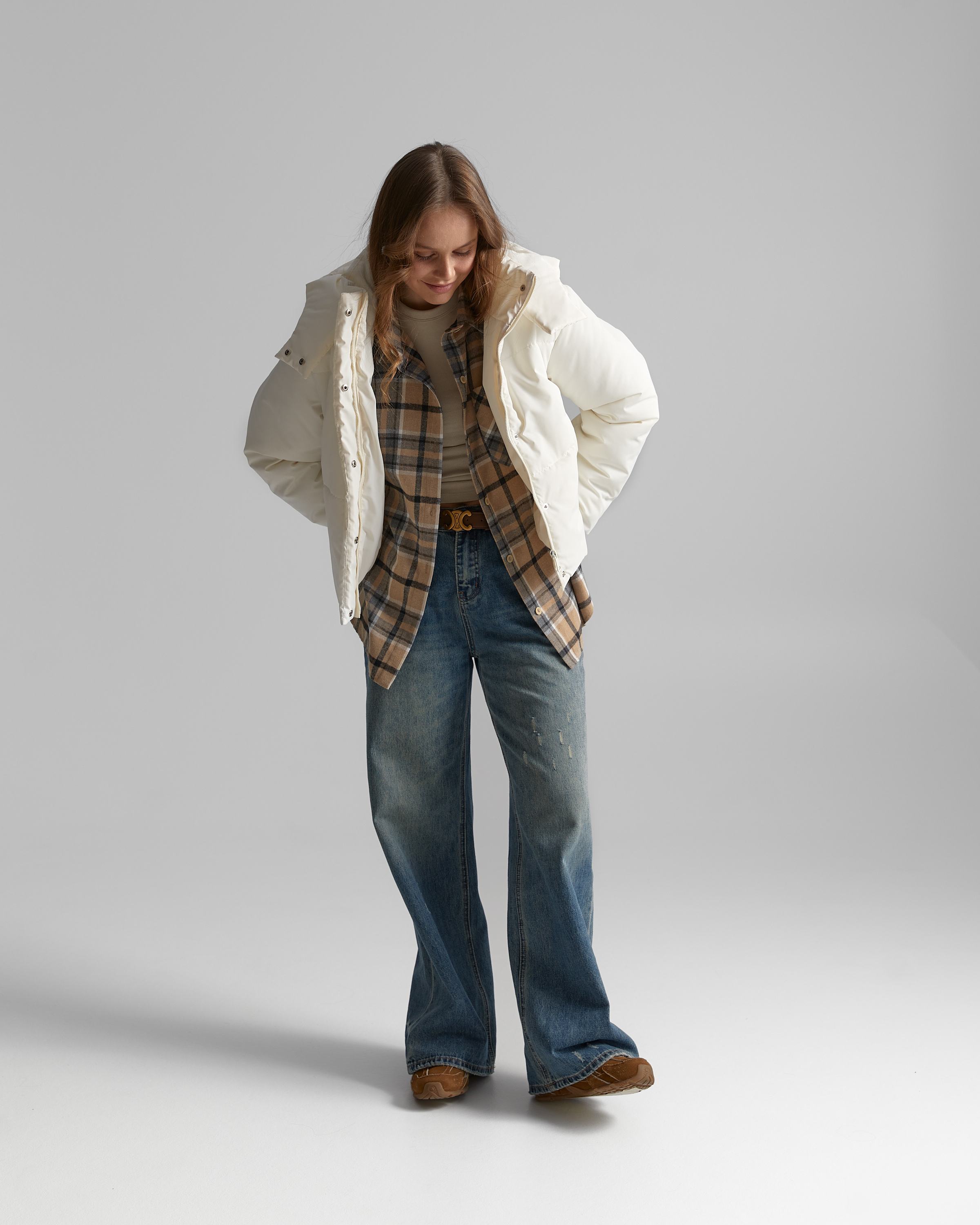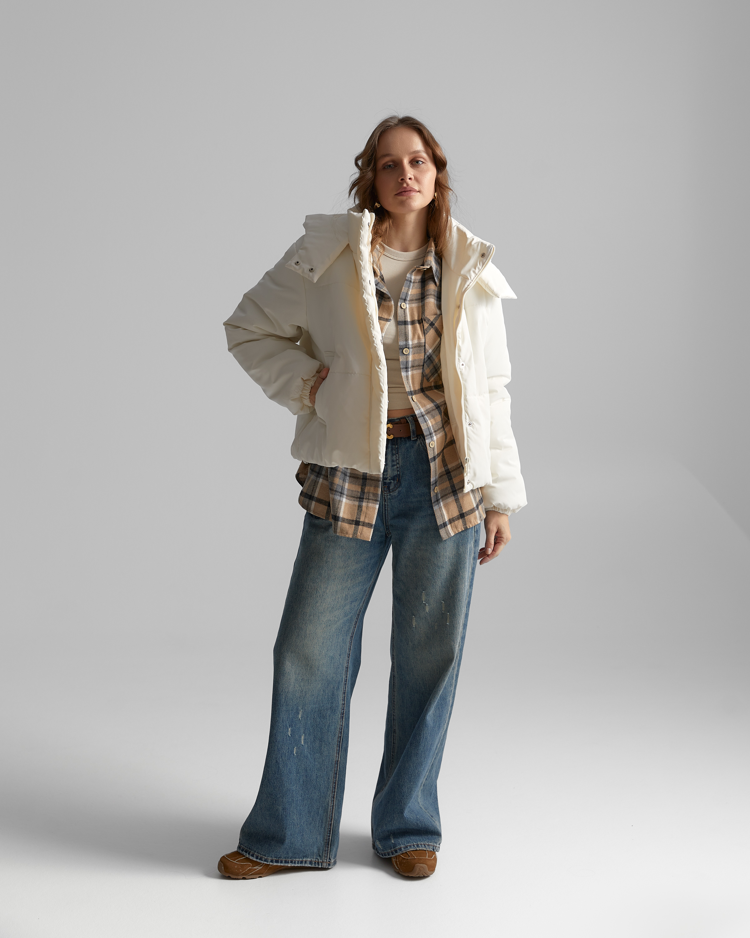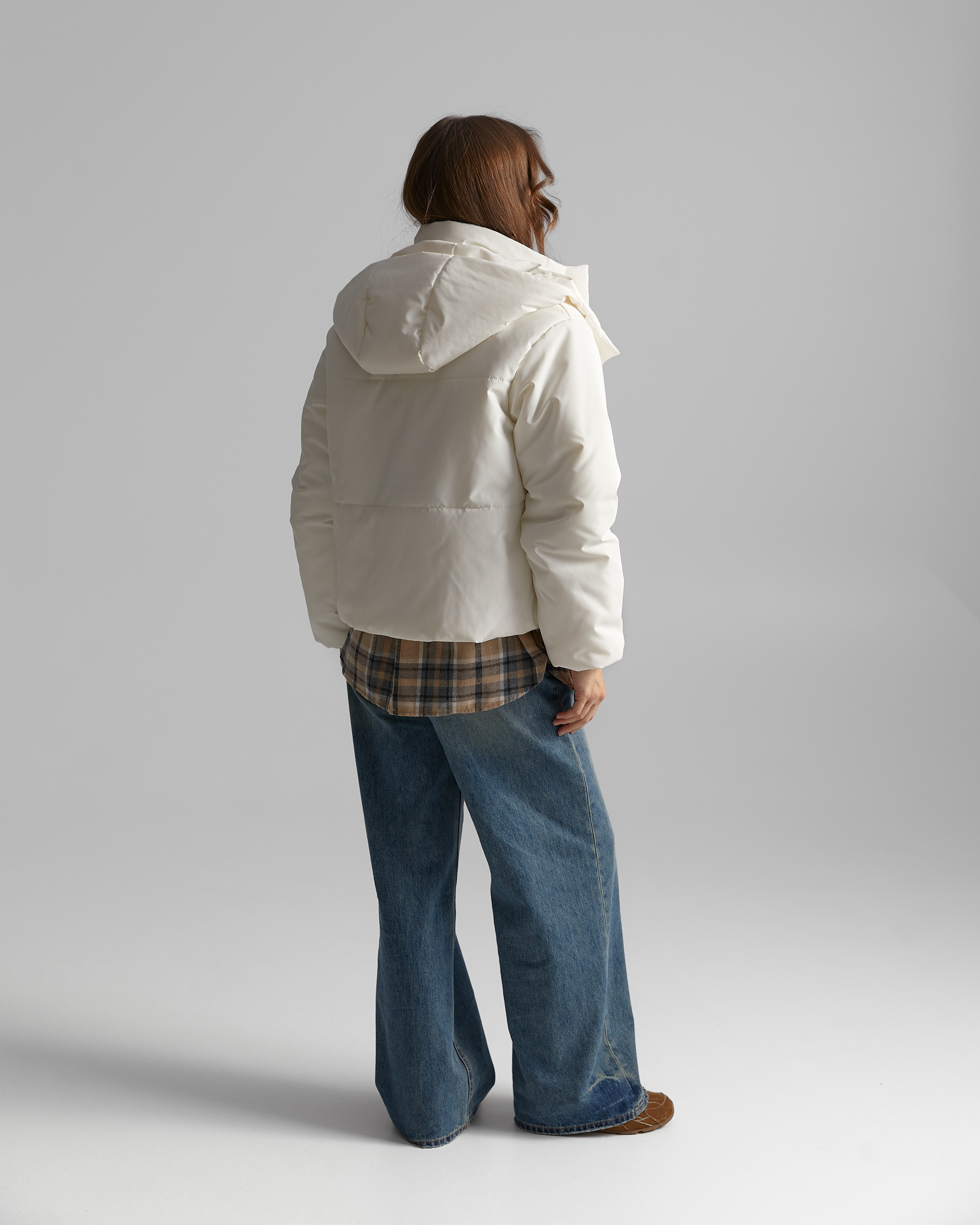 Демісезонна куртка актуального прямого вільного крою, утеплена синтепухом. Модель з спущеною лінією плеча і довгим вшивним рукавом. По низу рукава - пришивна вузька манжета всередині з еластичною тасьмою. Виріб з бічними кишенями листочками.