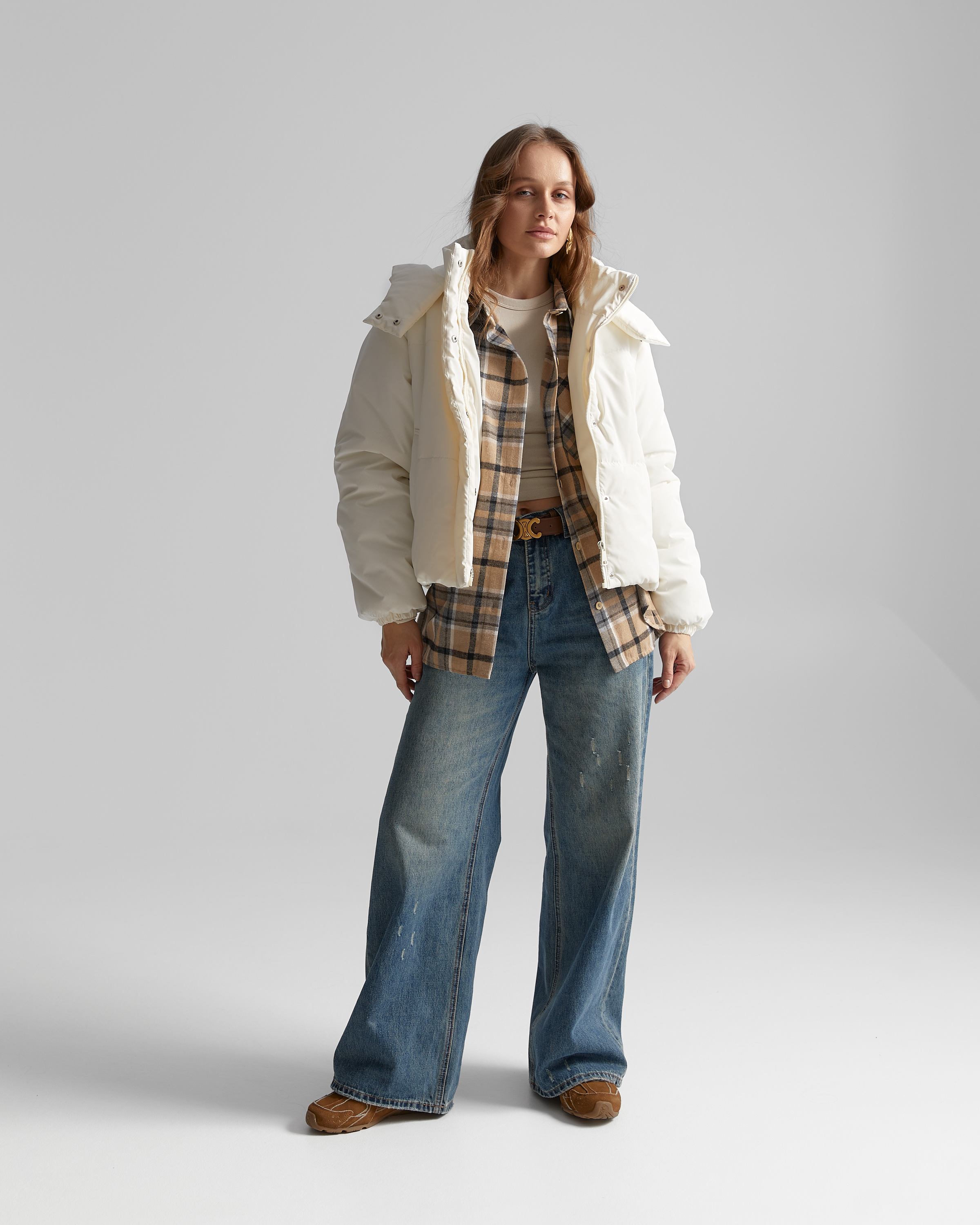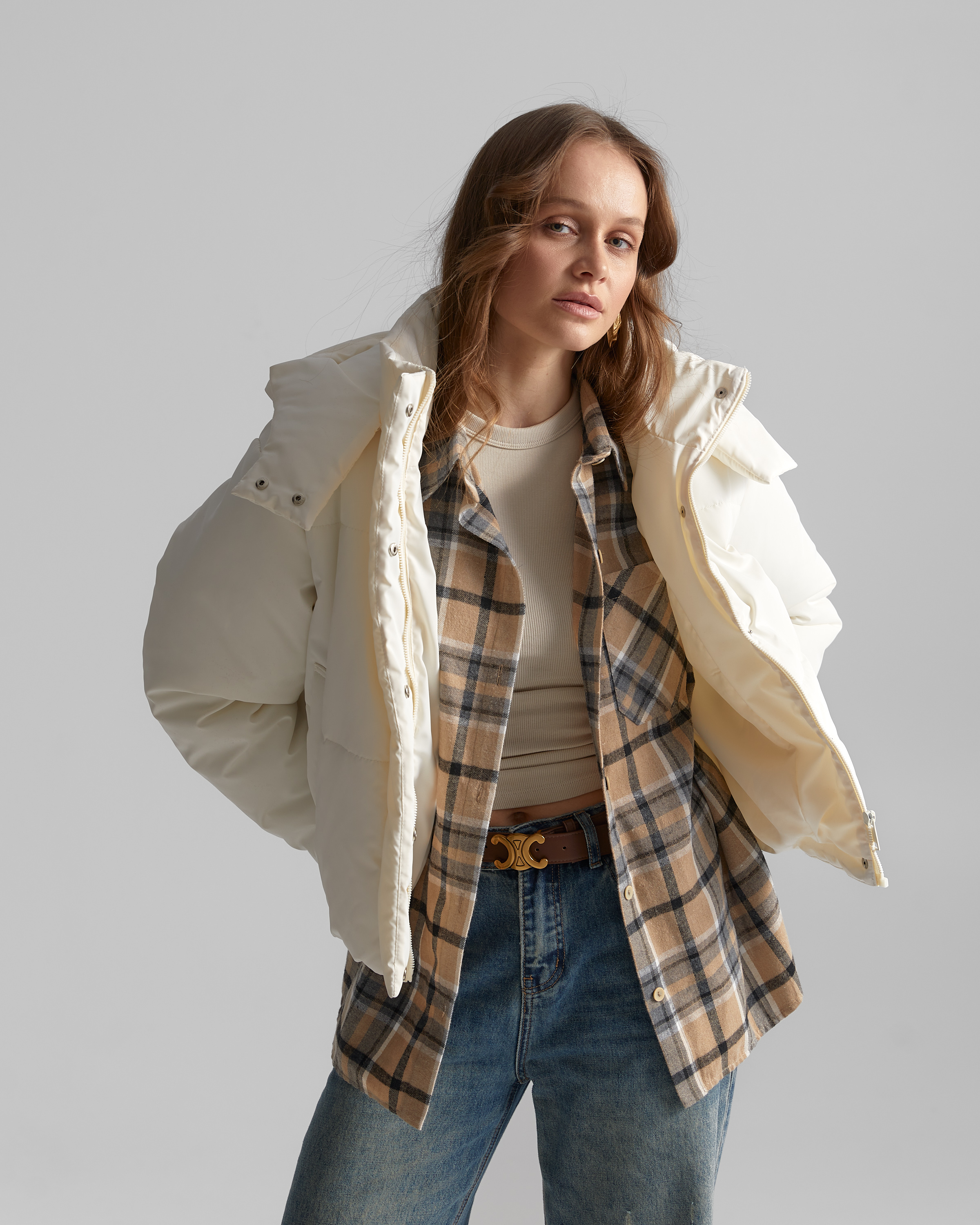 Застібка куртки подвійна - на центральну тасьму блискавку та планку з потайними кнопками. Виріб з коміром стійкою та з'ємним каптуром. По низу виробу - з виворітньої сторони, резиновий шнур з блочками та фіксаторами, для регулювання ширини по низу.