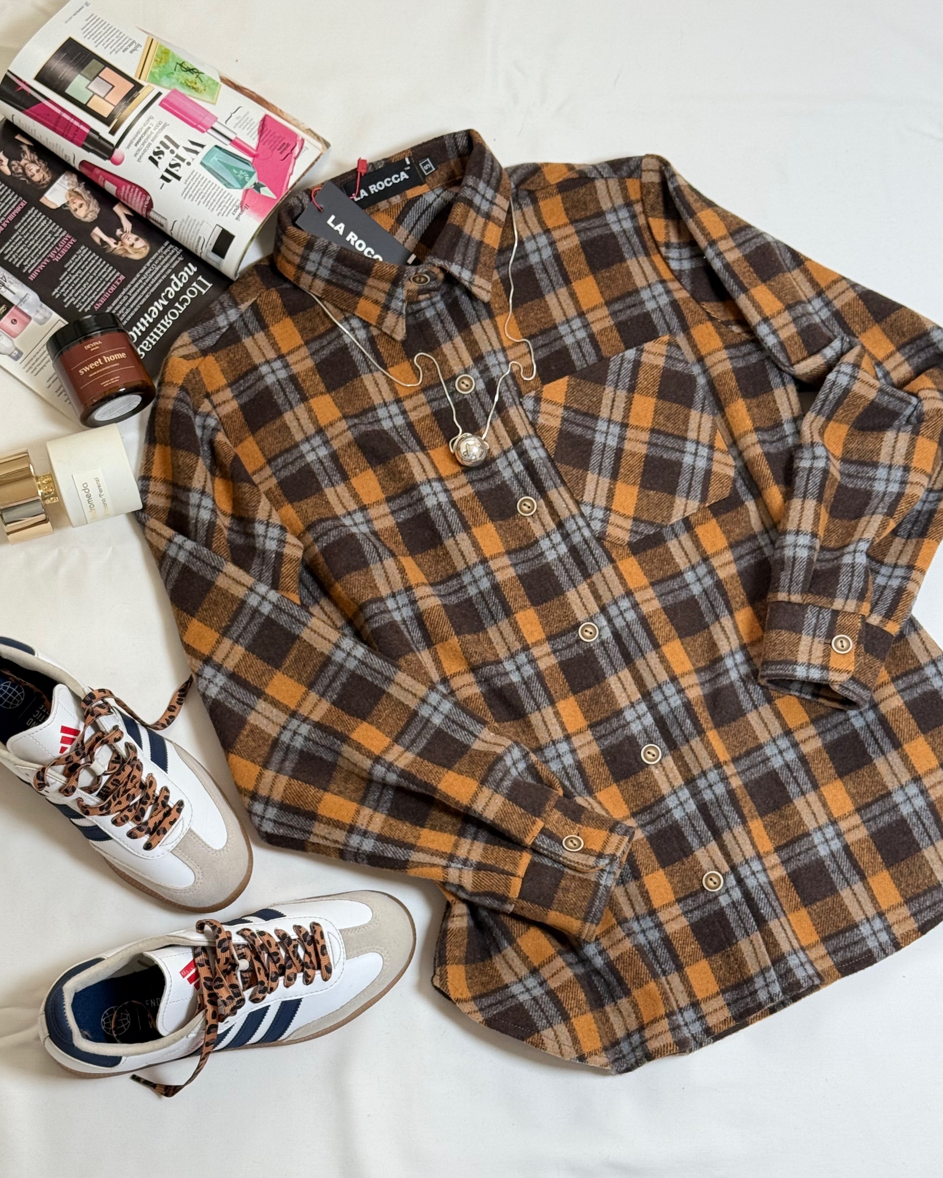 Картата тепла кашемірова сорочка must-have сезону, трендова універсальна модель прямого крою, з застібкою на петлі і гудзики, з відкладним коміром і накладною кишенею.