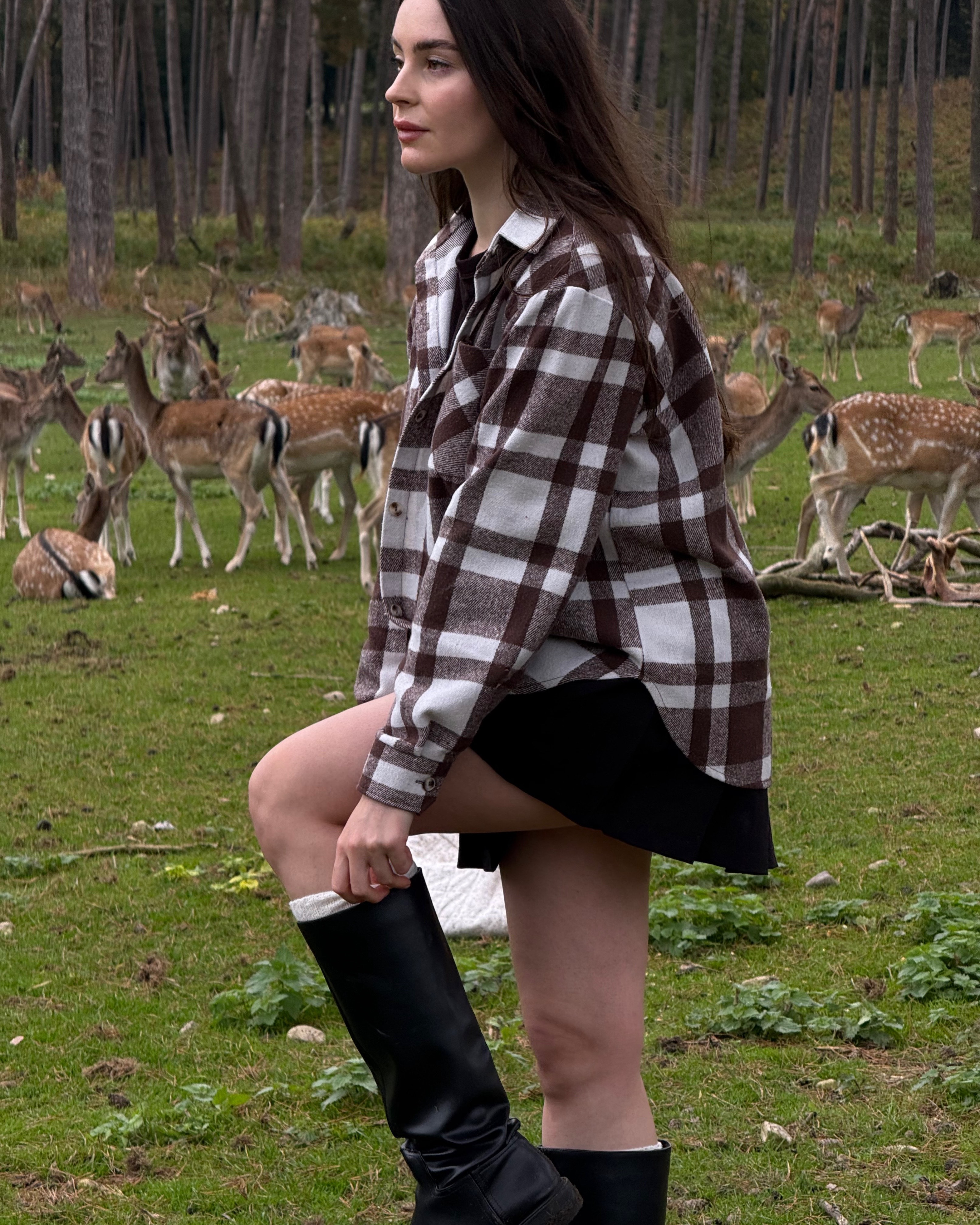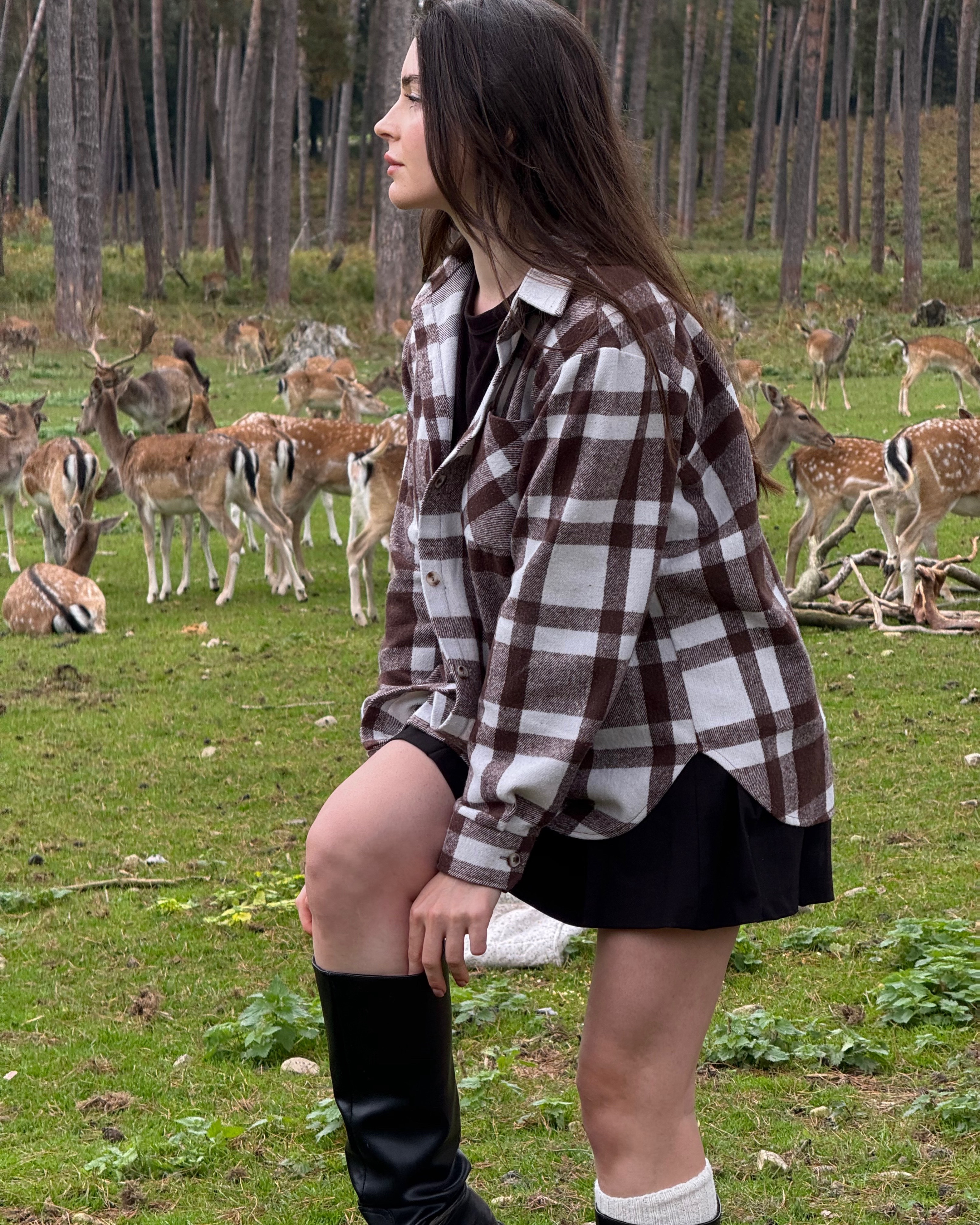 Картата тепла кашемірова сорочка must-have сезону, трендова універсальна модель прямого крою, з застібкою на петлі і гудзики, з відкладним коміром і накладною кишенею.