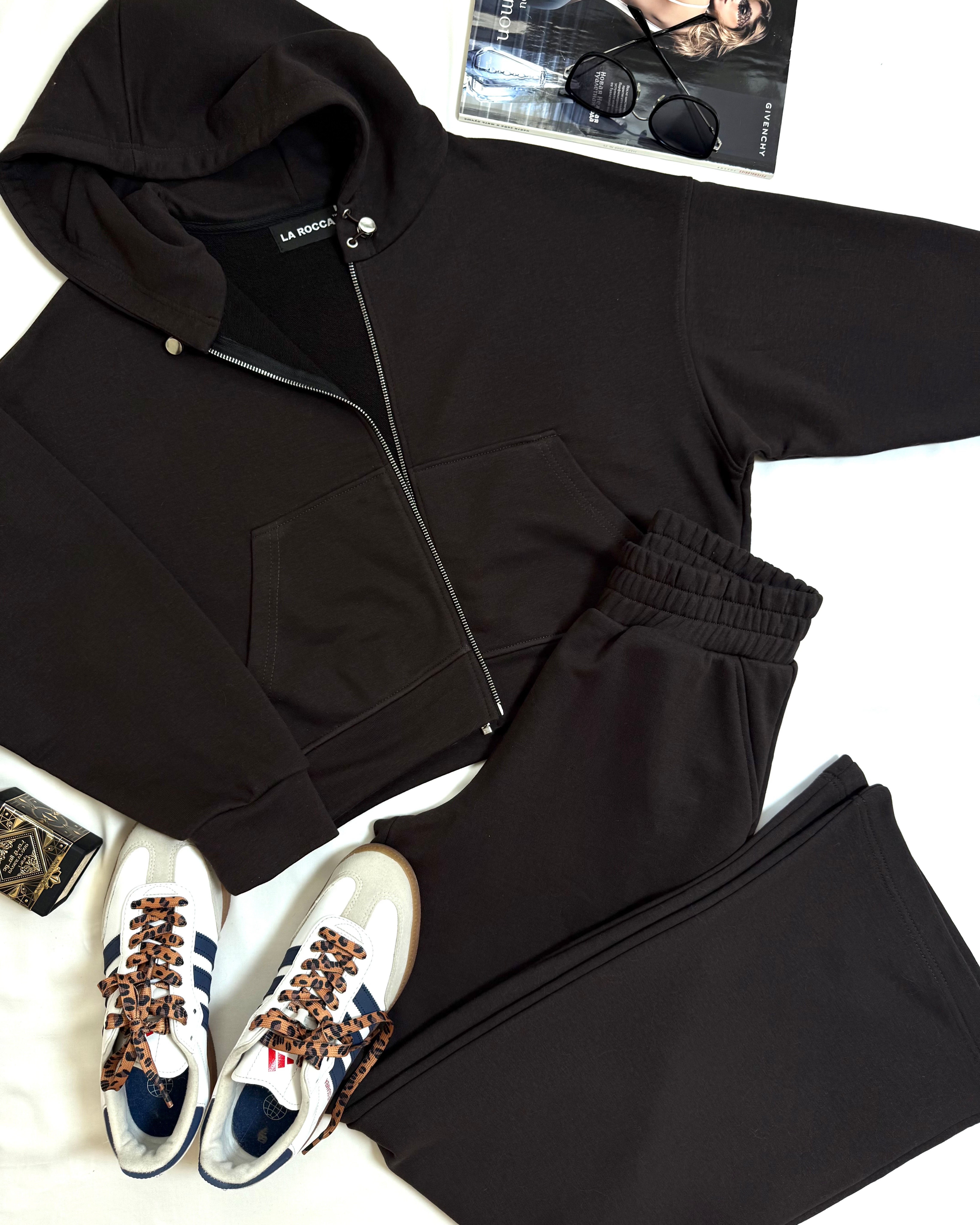 Костюм із бавовняного трикотажу трьохнитки на флісі складається з вкороченого зіп худі на замочку та брюків "палаццо".