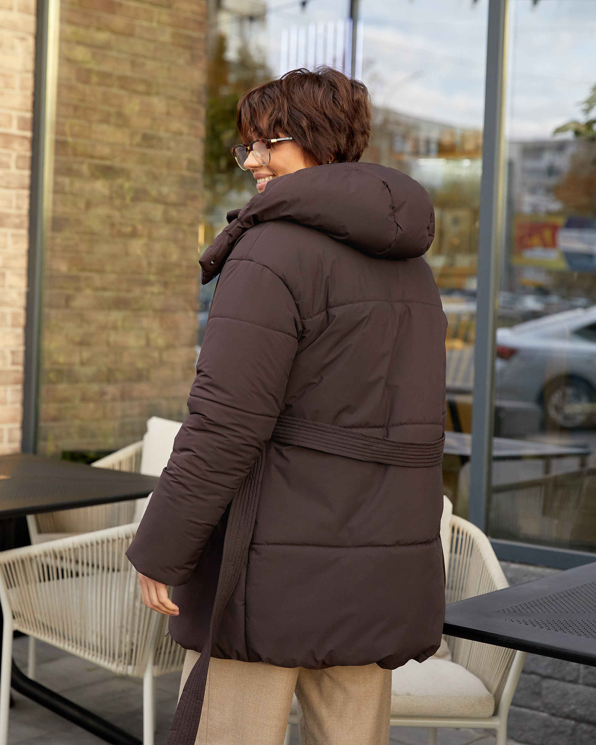 Універсальна, тепла і затишна зимова подовжена куртка під пасок в самих актуальних кольорах сезону.