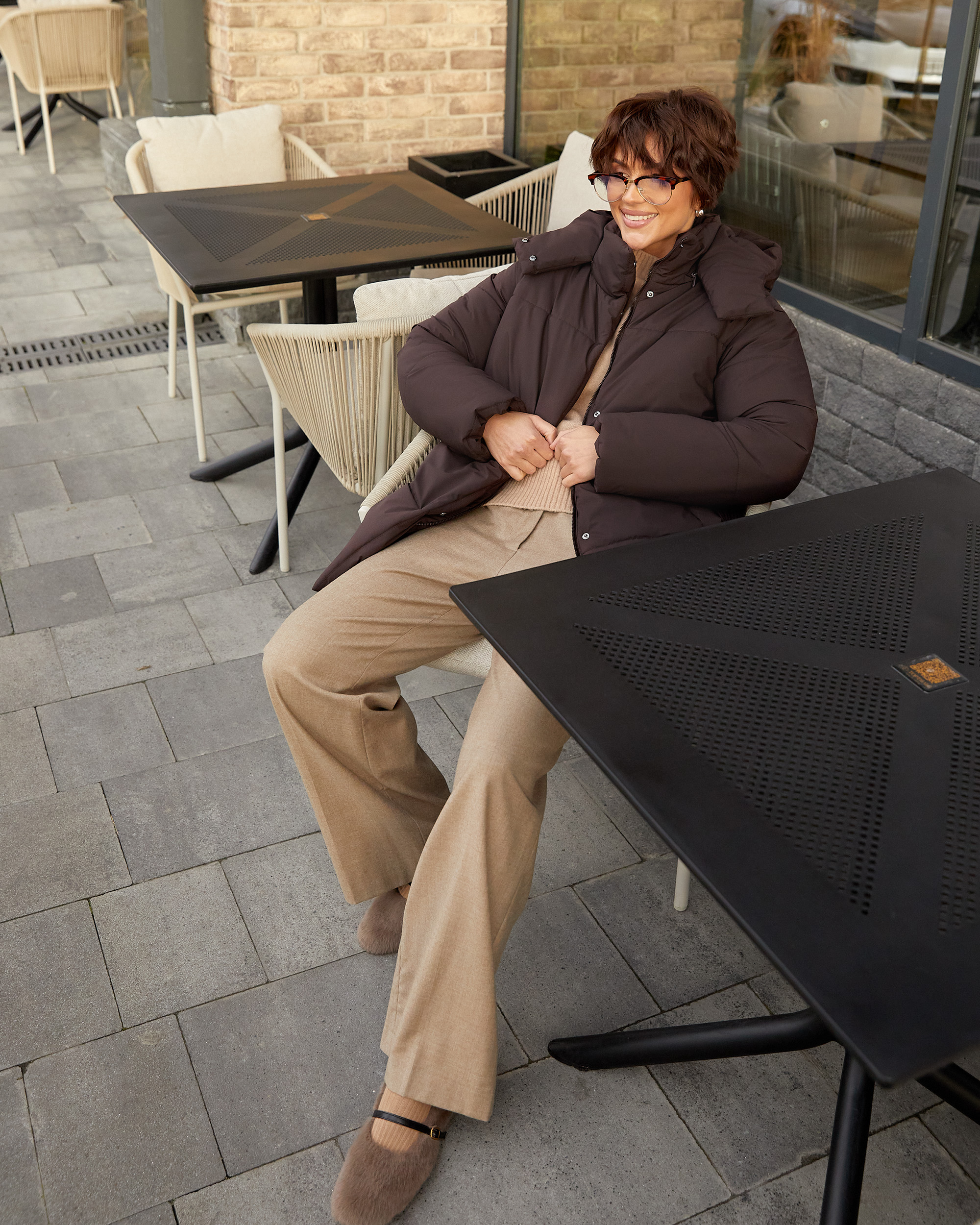 Дана модель чудово поєднується з нашими теплими костюмами на флісі з брюками палаццо - для створення актуальних і стильних міських образів.