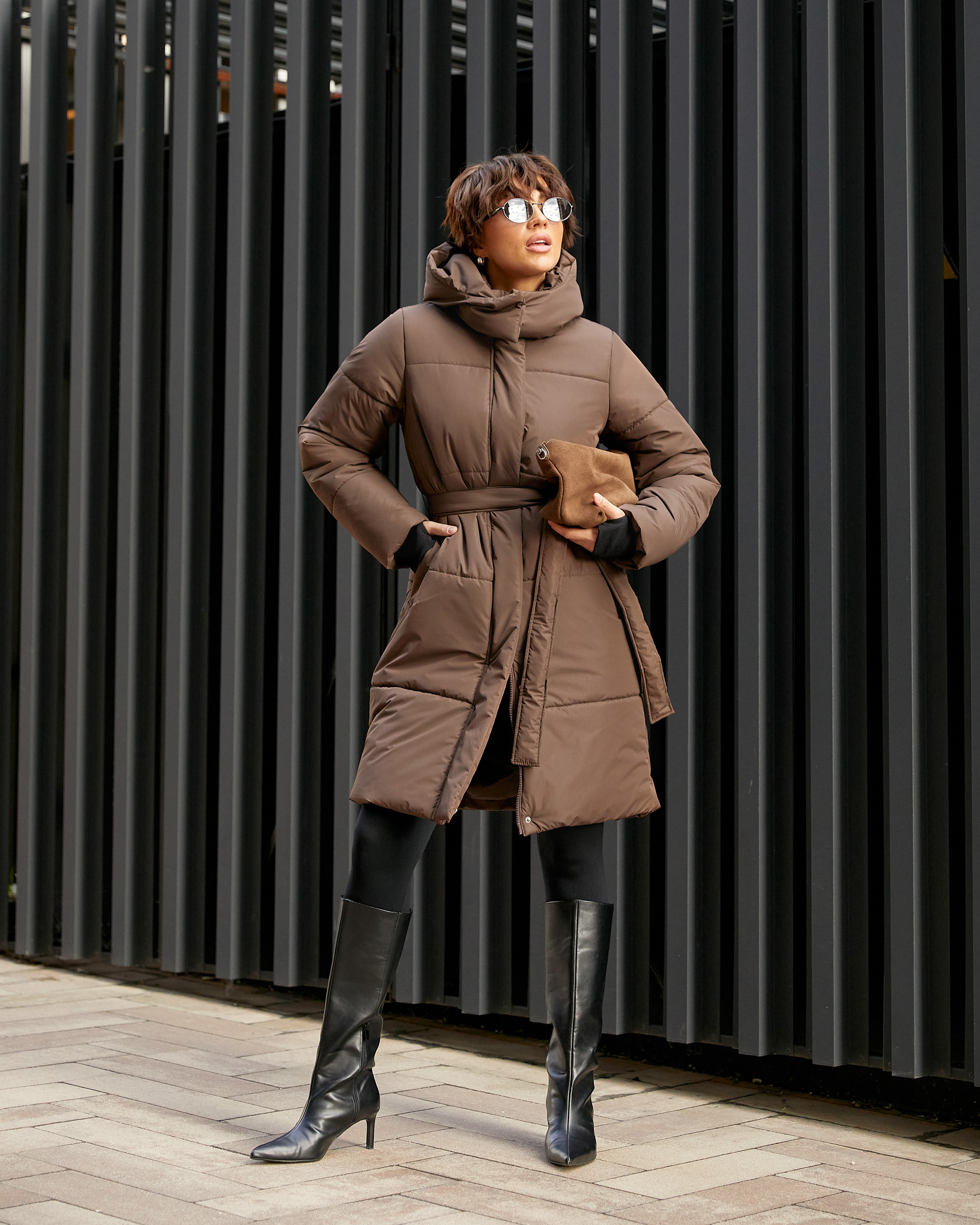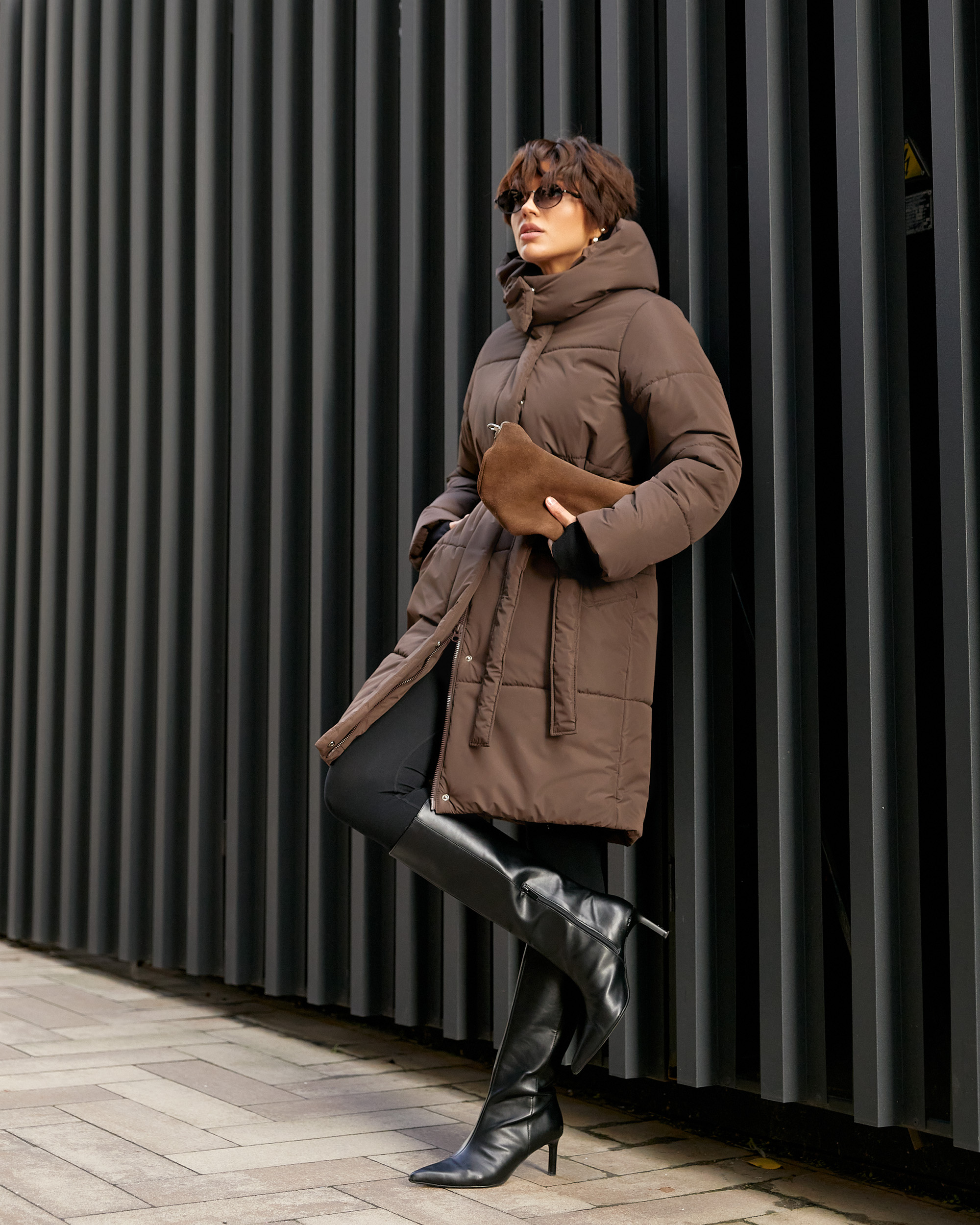 Легка, тепла і комфортна зимова подовжена модель під пасок в самих популярних кольорах сезону.