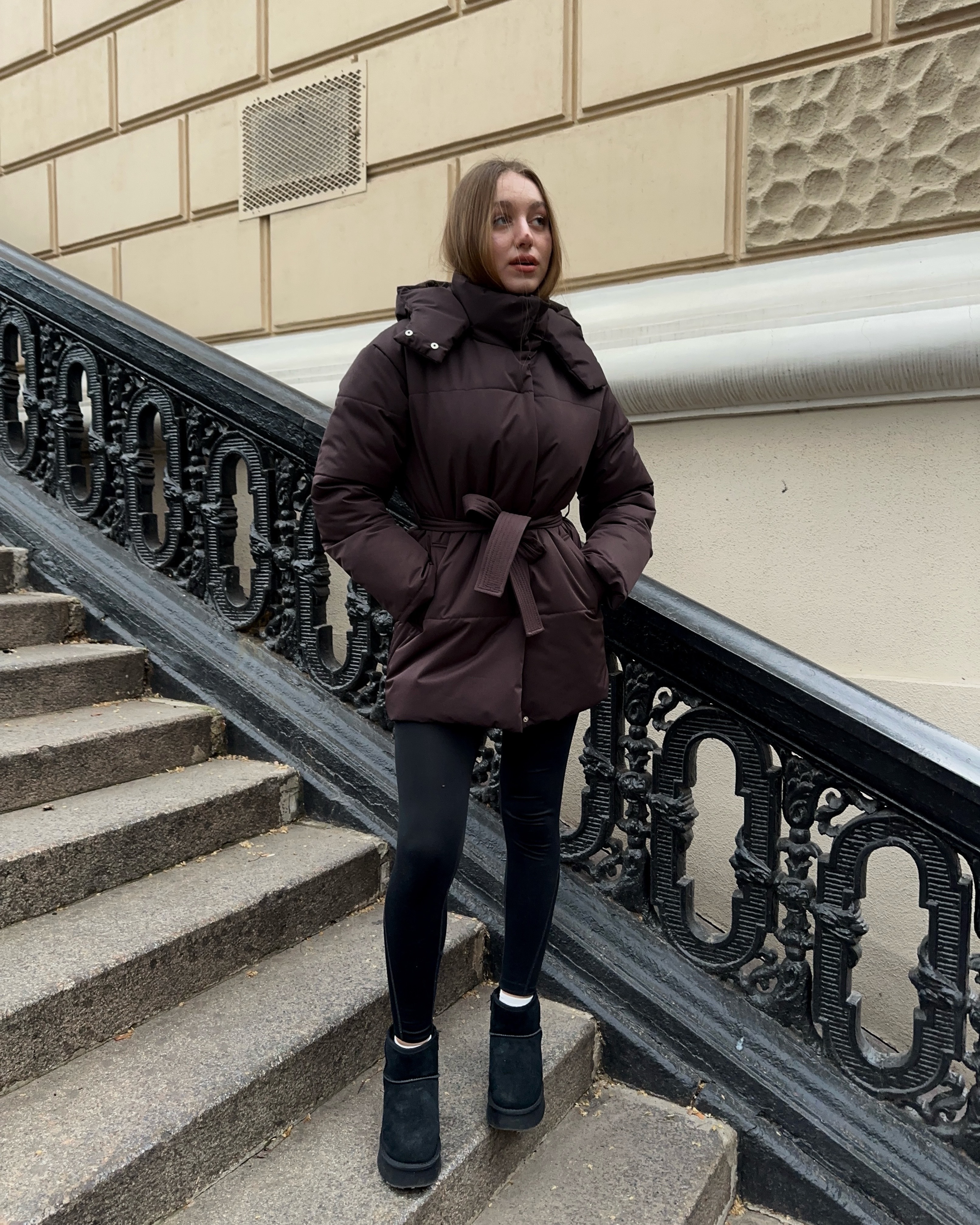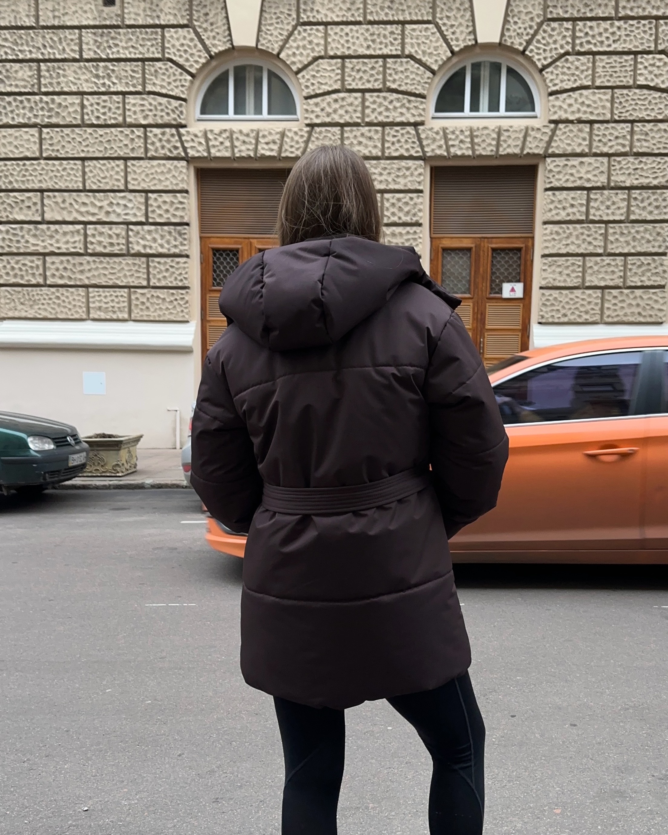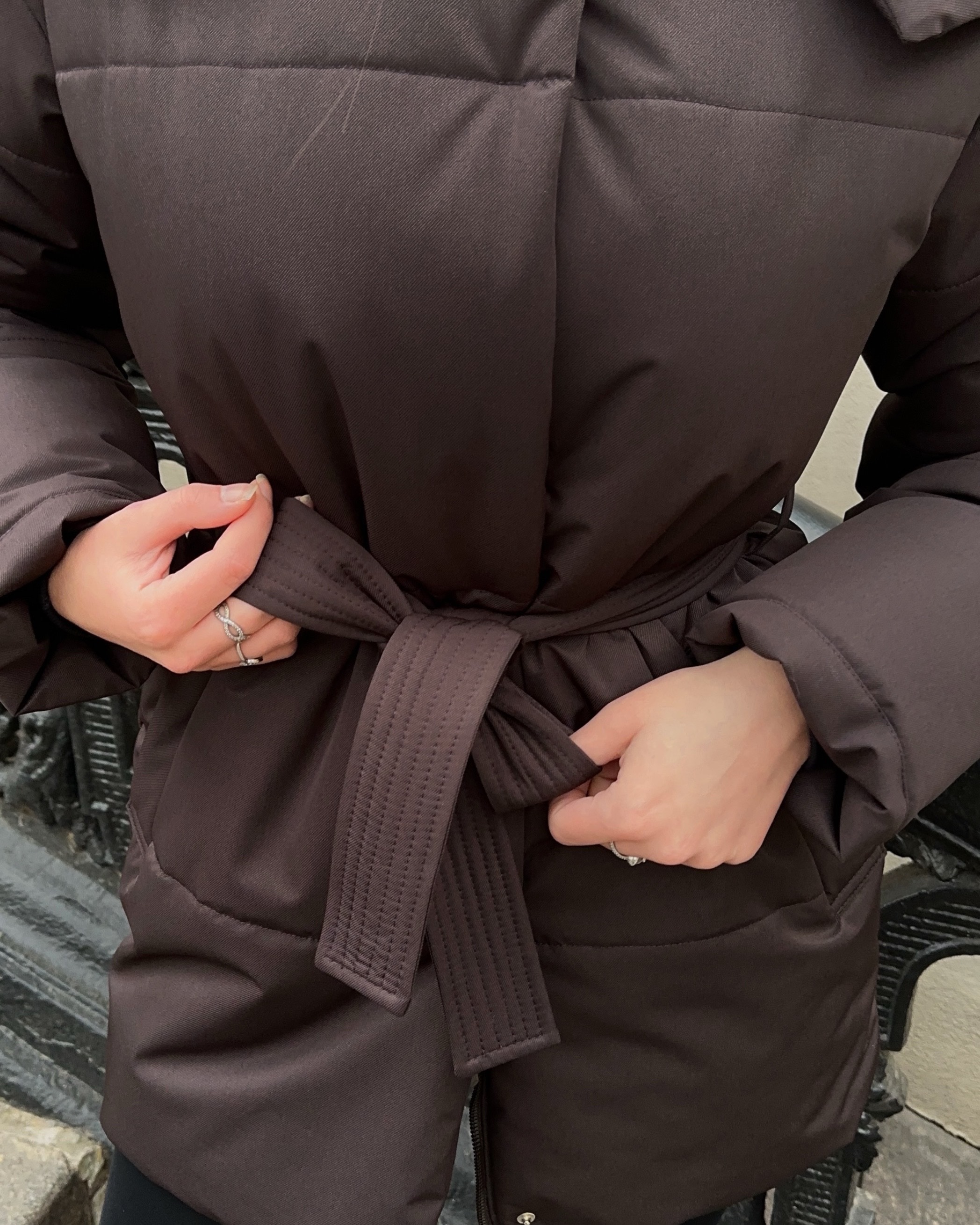 Універсальна, тепла і затишна зимова подовжена куртка під пасок в самих актуальних кольорах сезону.