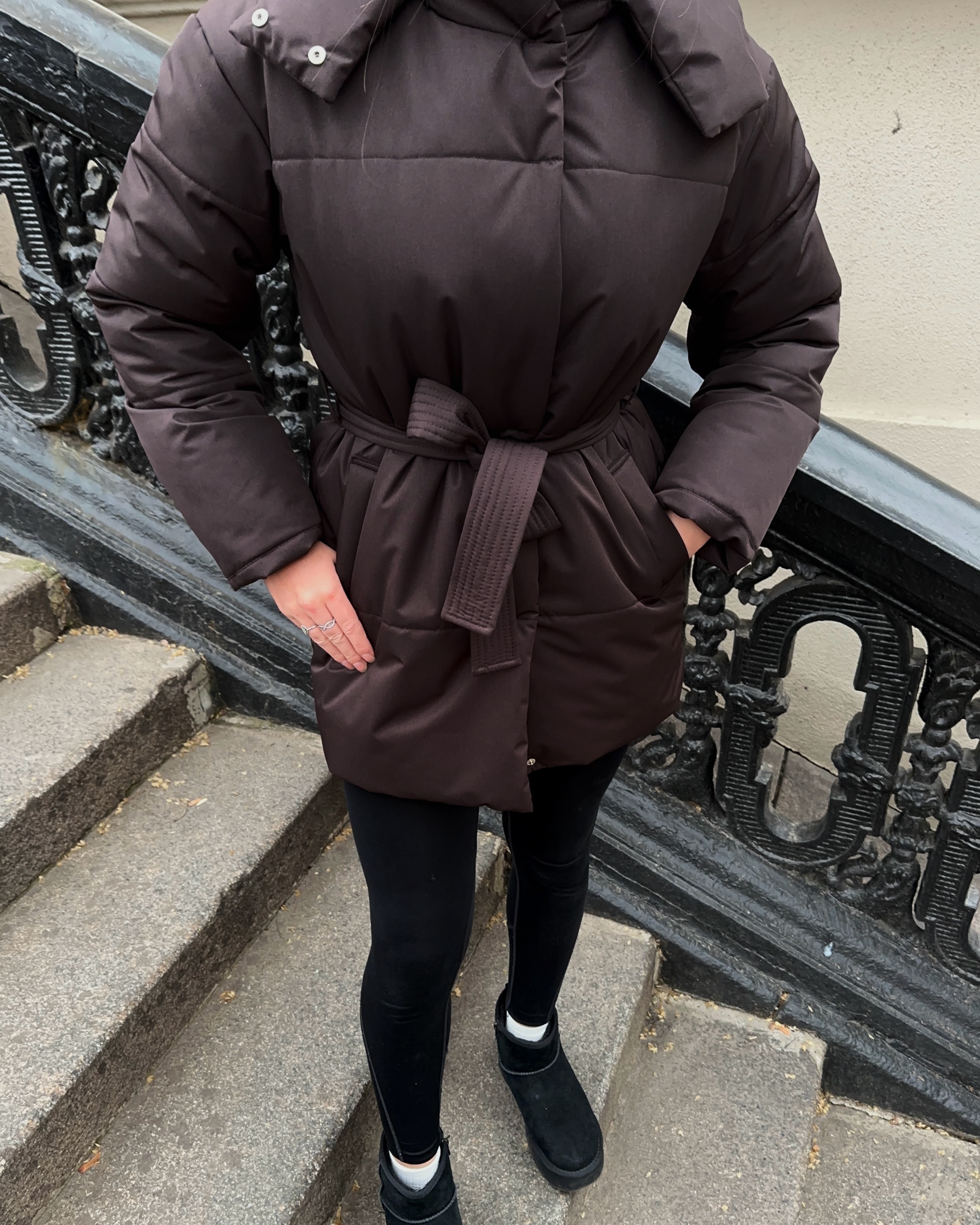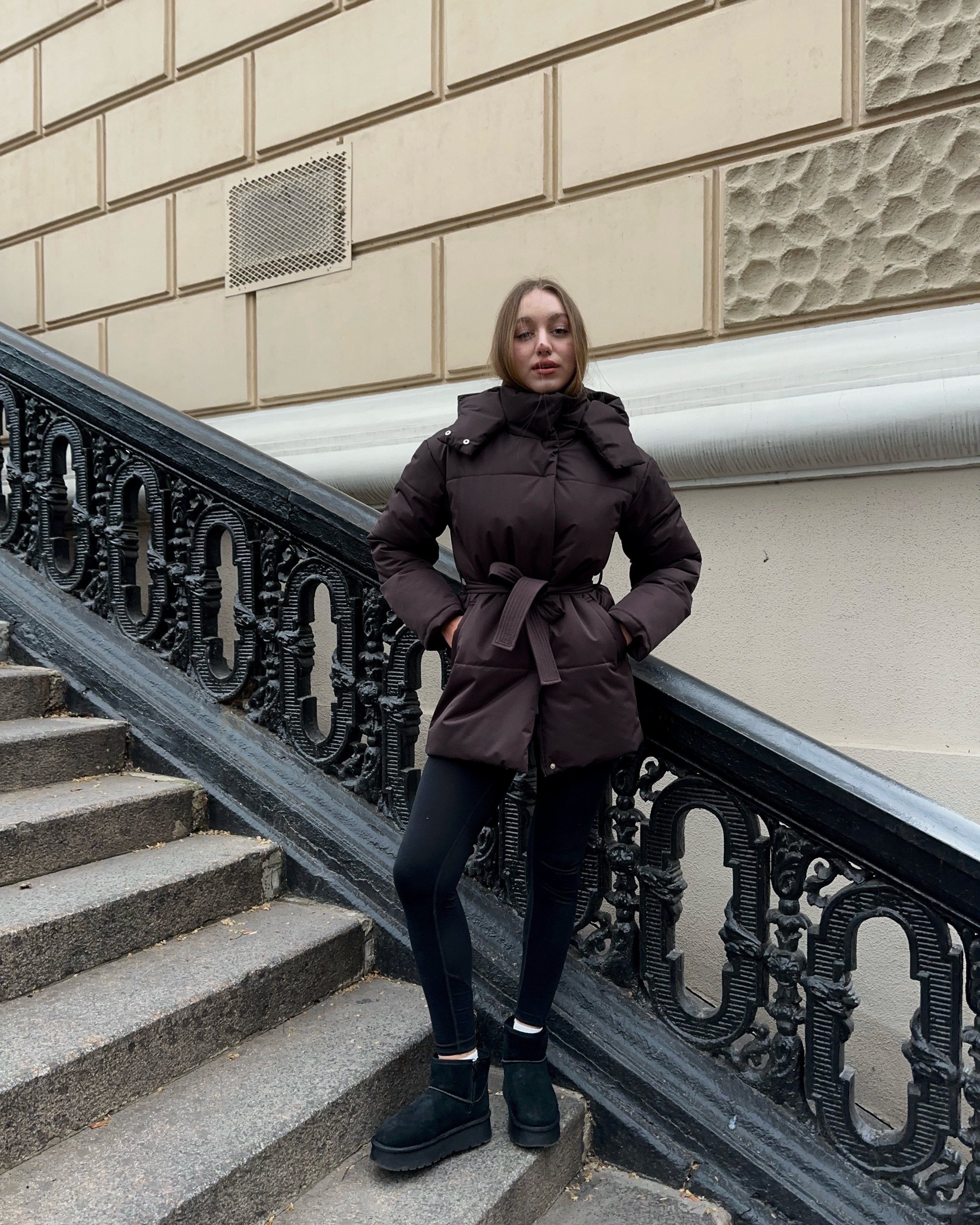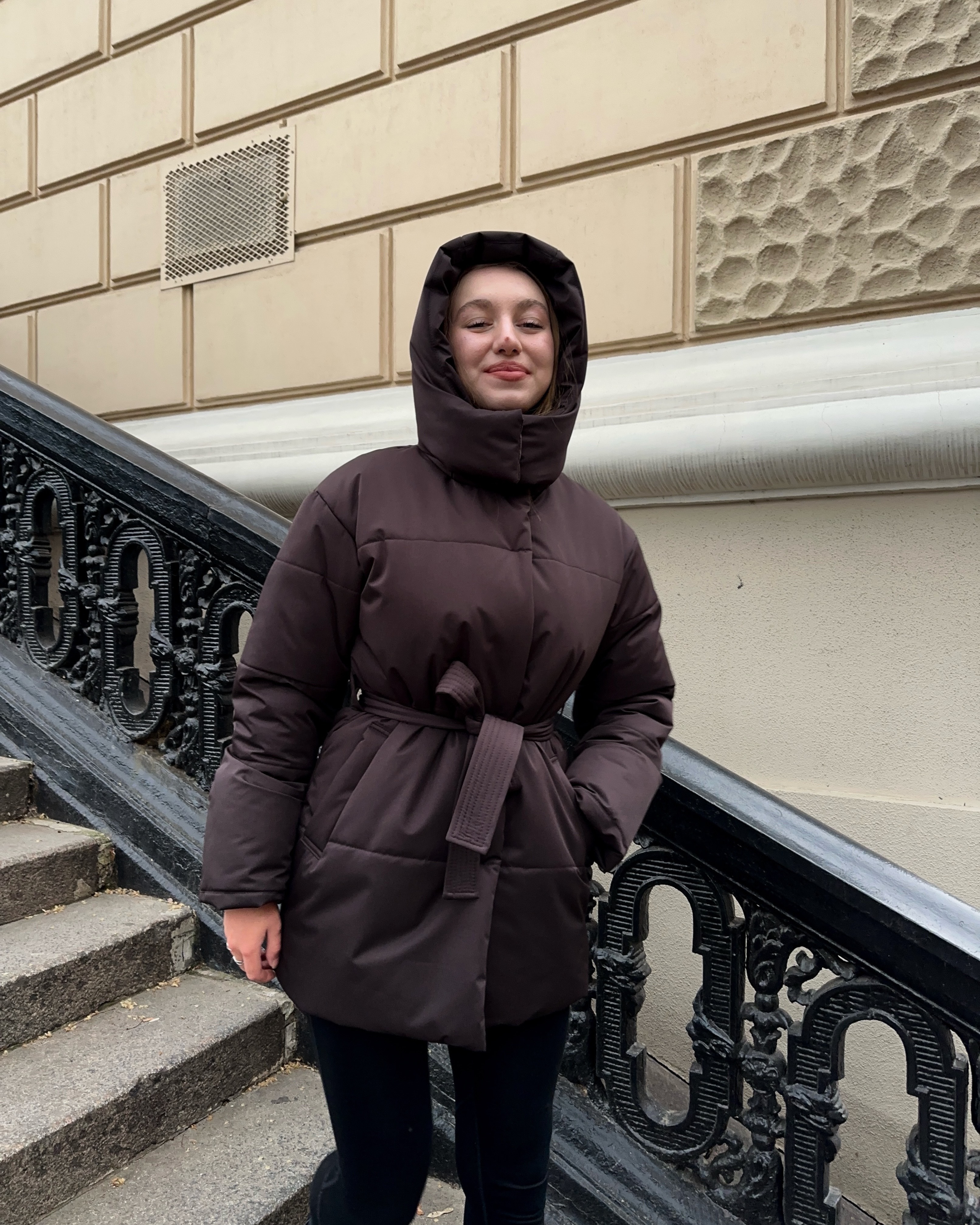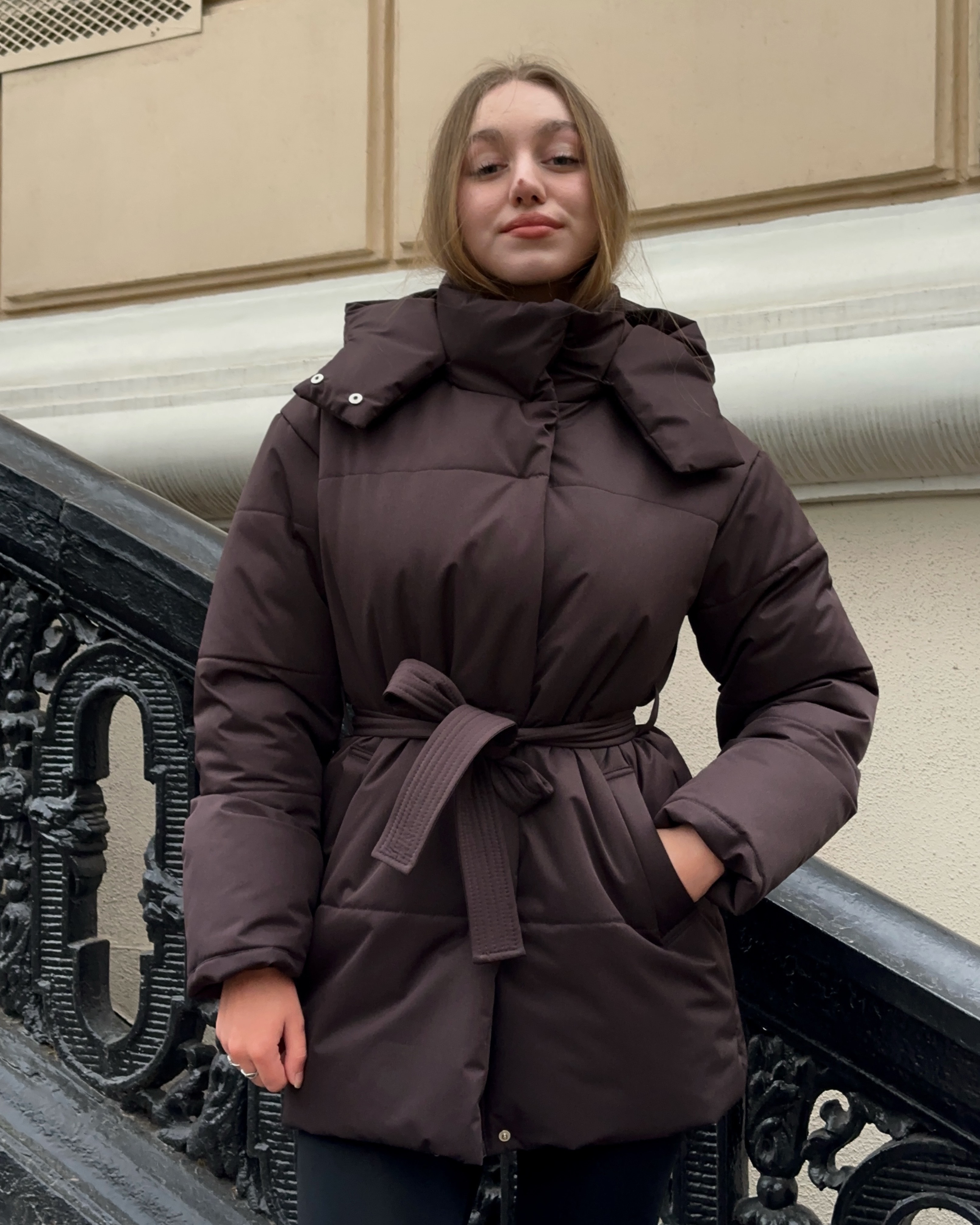 Універсальна, тепла і затишна зимова подовжена куртка під пасок в самих актуальних кольорах сезону.