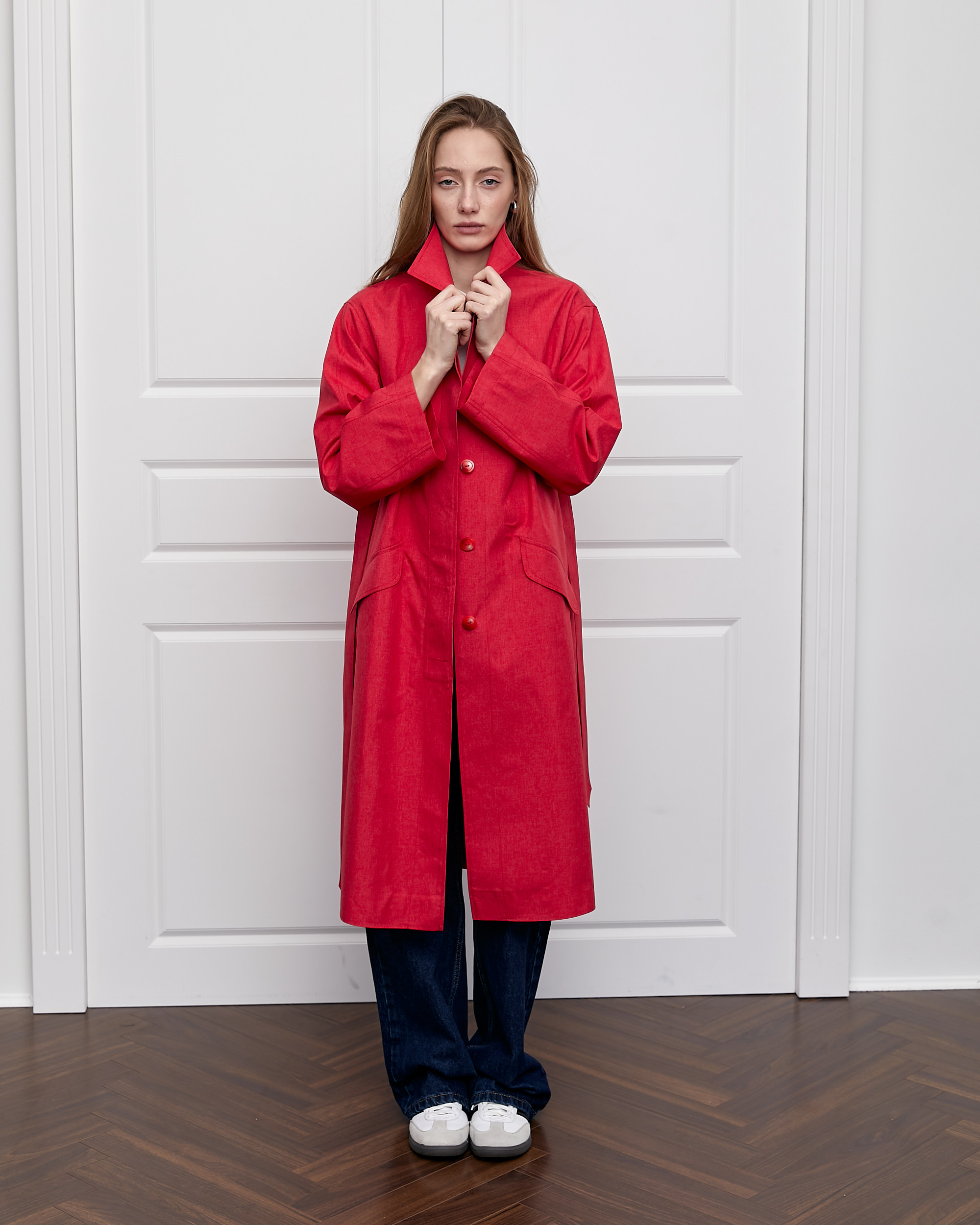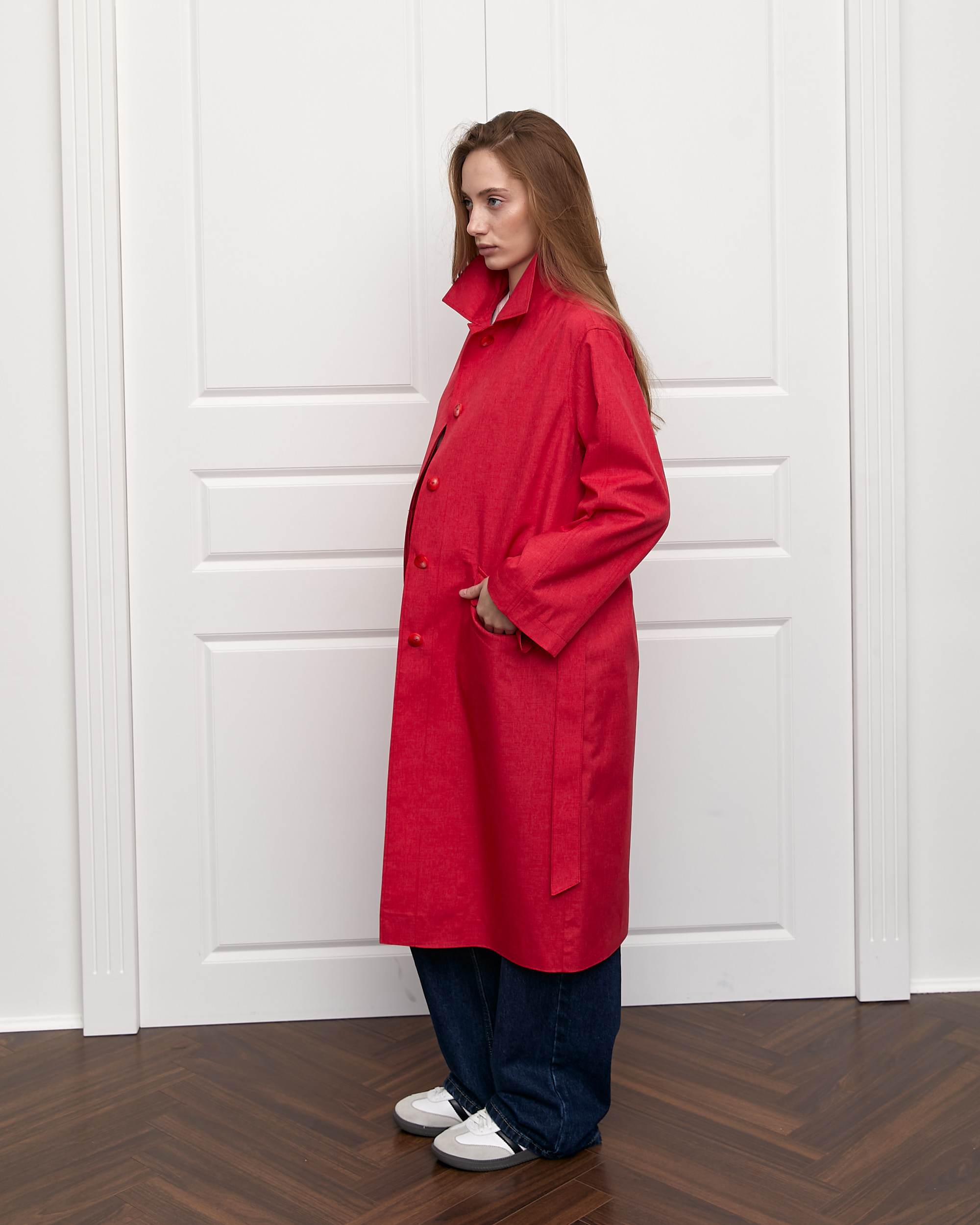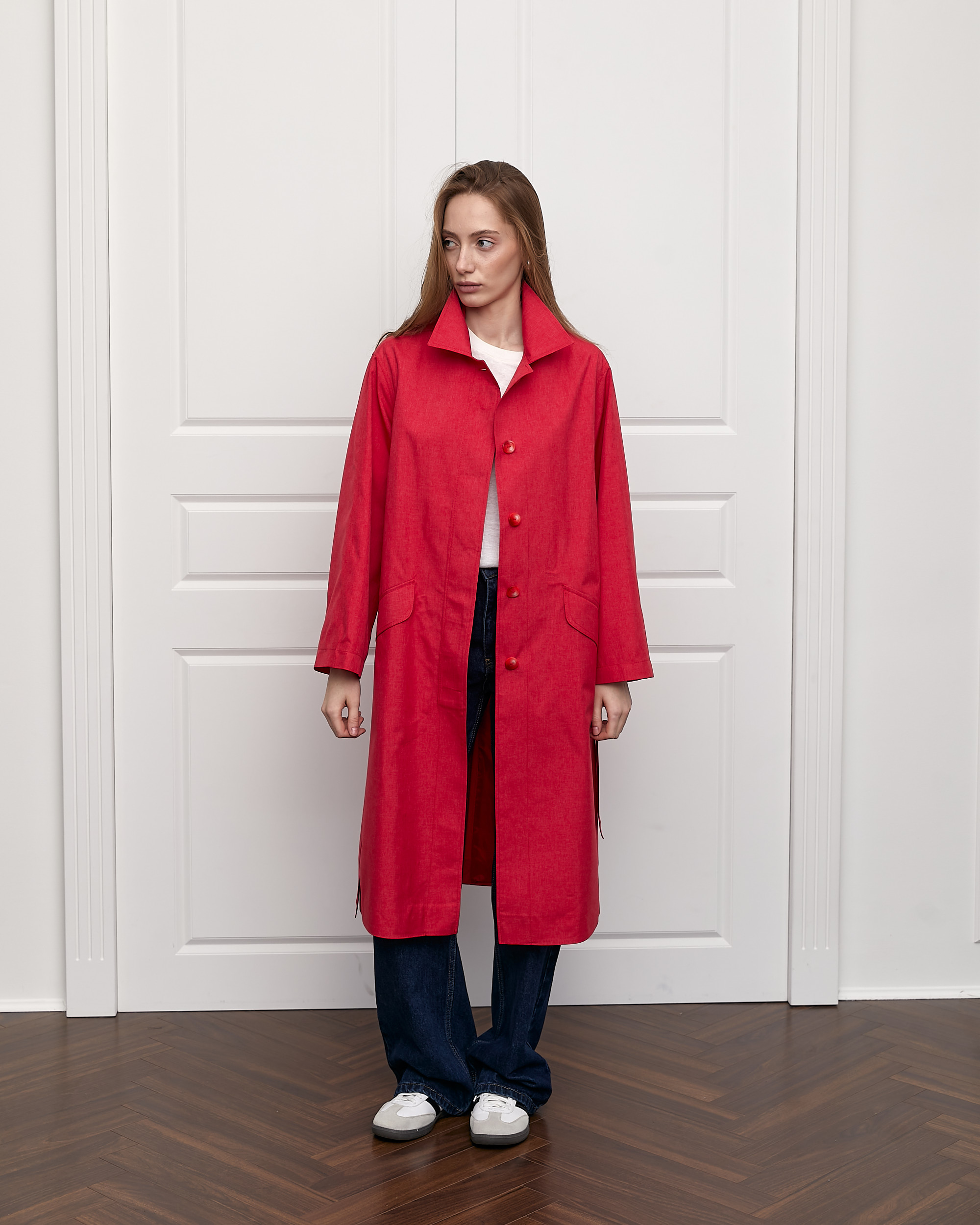 Новинка сезону - нова версія класичного тренчу виготовлена із щільної водонепроникної тканини.