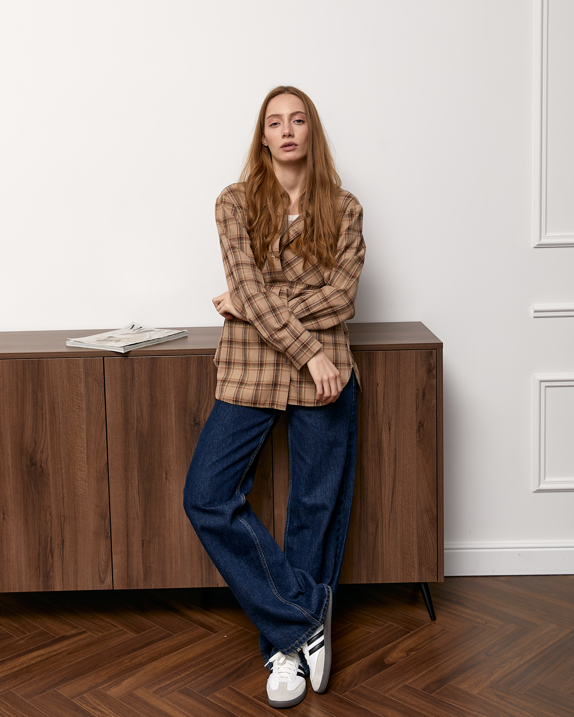 Картата сорочка must-have сезону, трендова універсальна модель прямого крою, з застібкою на петлі і гудзики, з відкладним коміром і накладною кишенею.