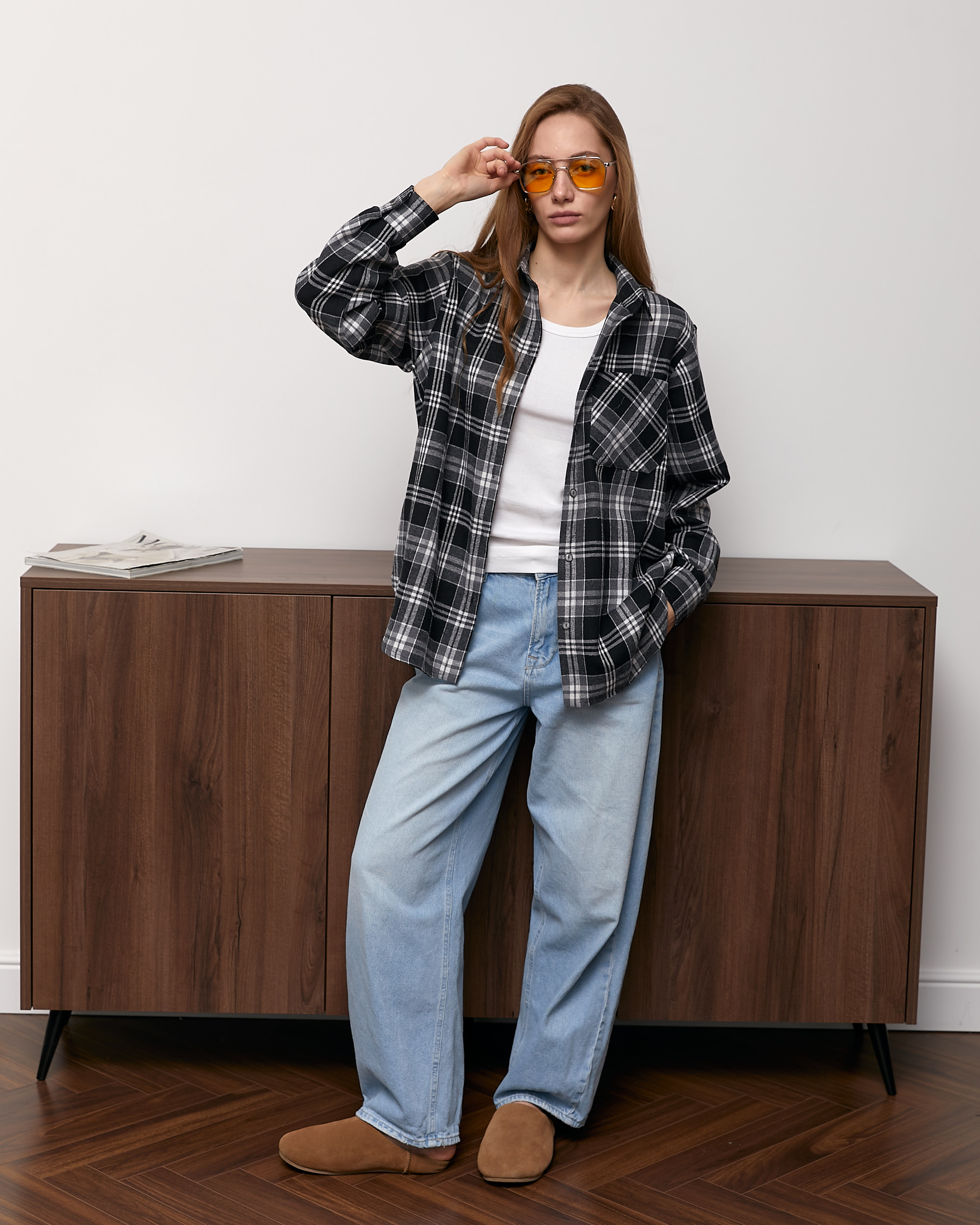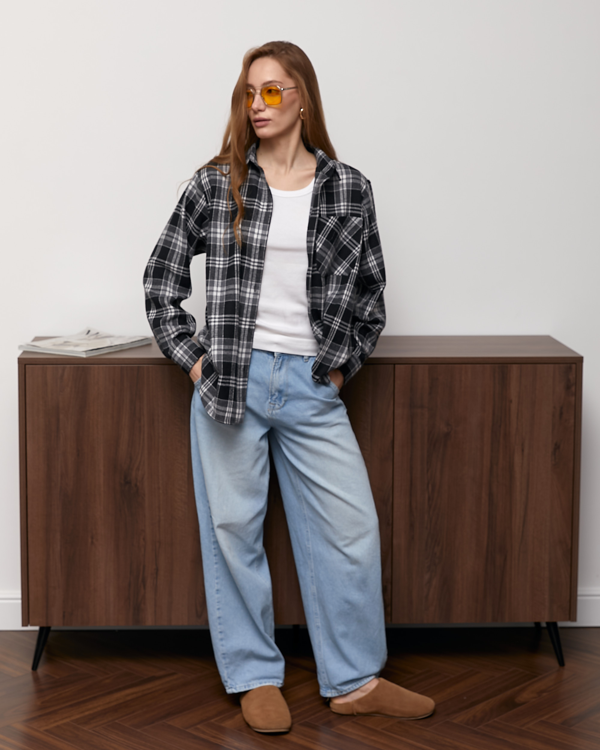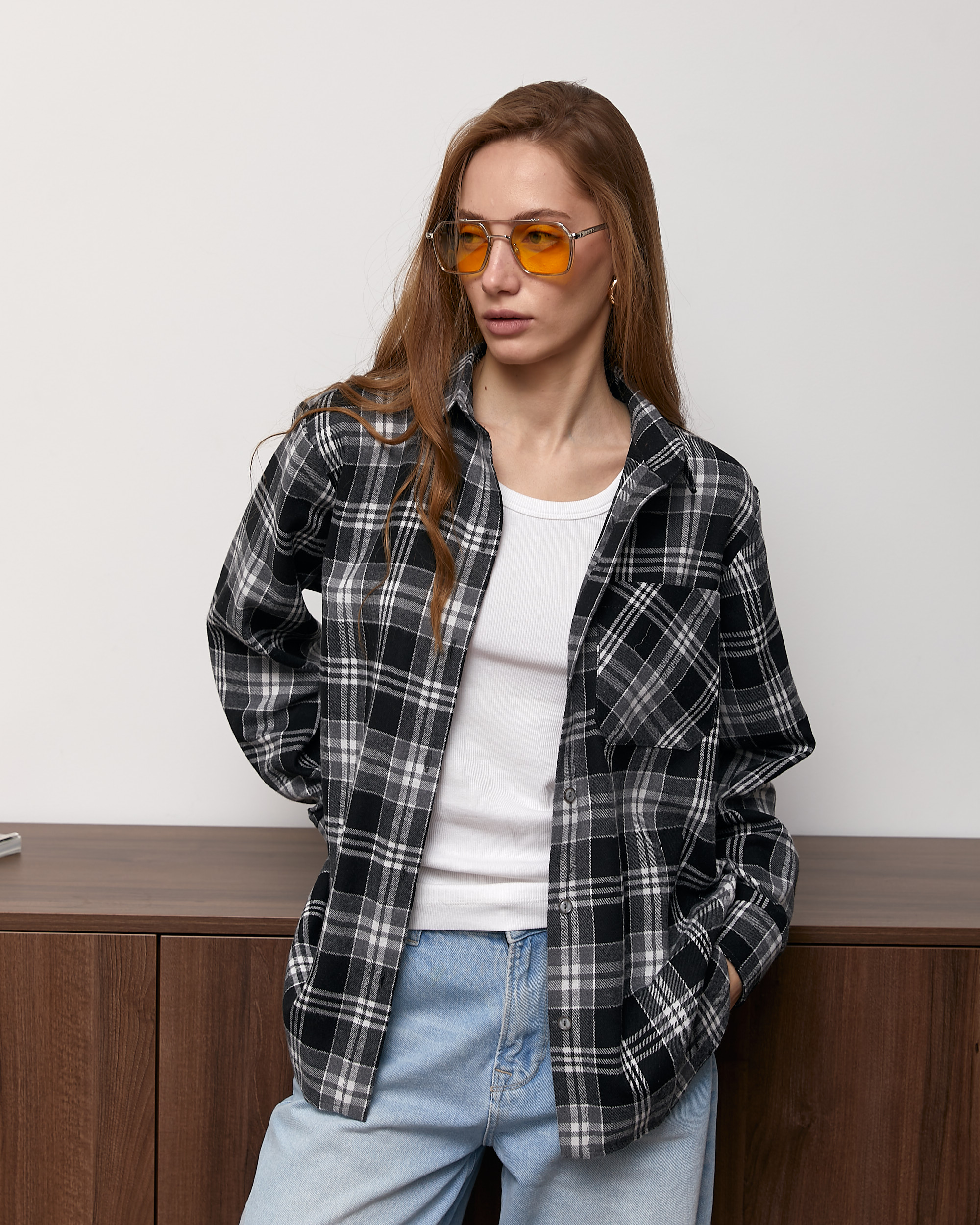 Картата сорочка must-have сезону, трендова універсальна модель прямого крою, з застібкою на петлі і гудзики, з відкладним коміром і накладною кишенею.
