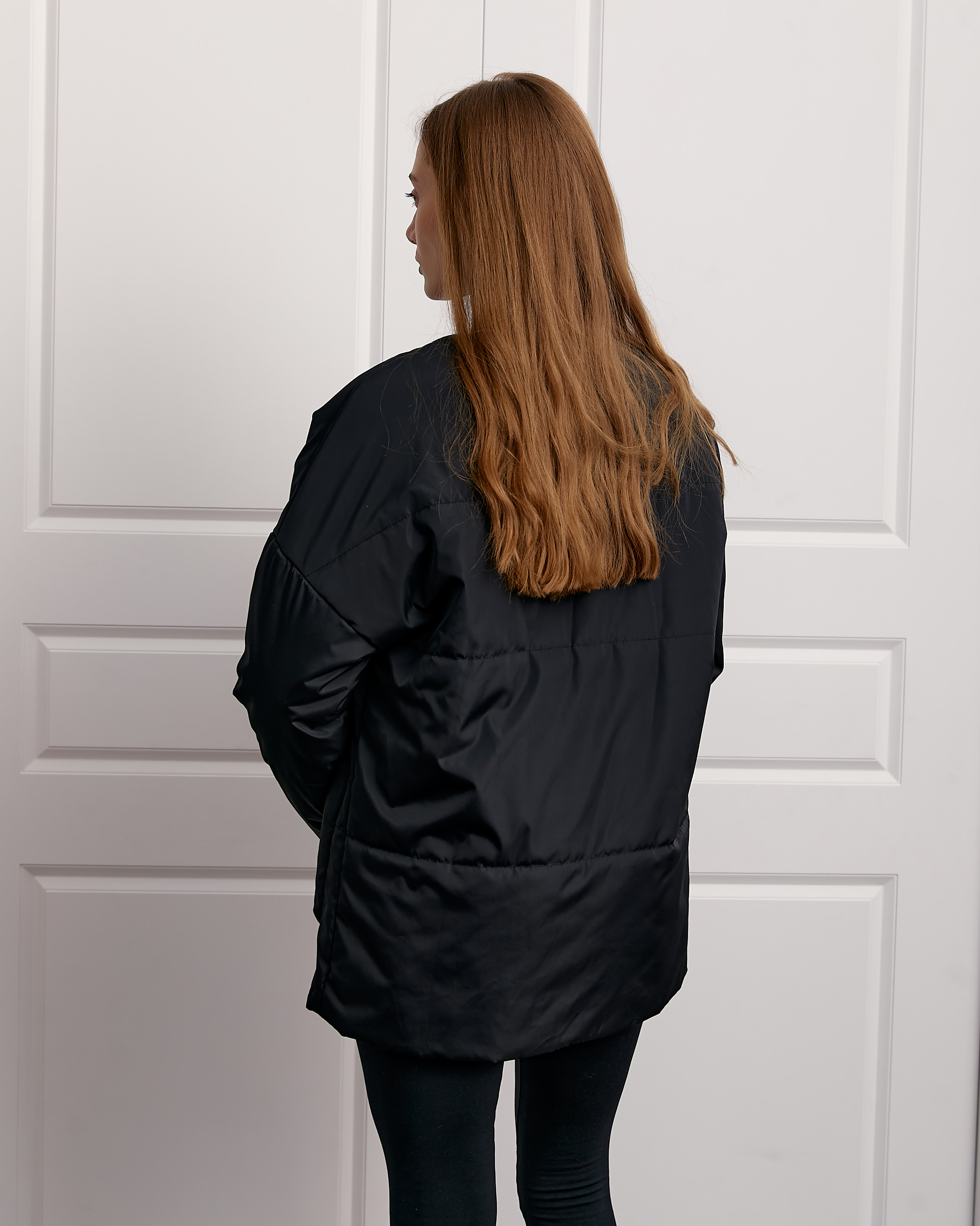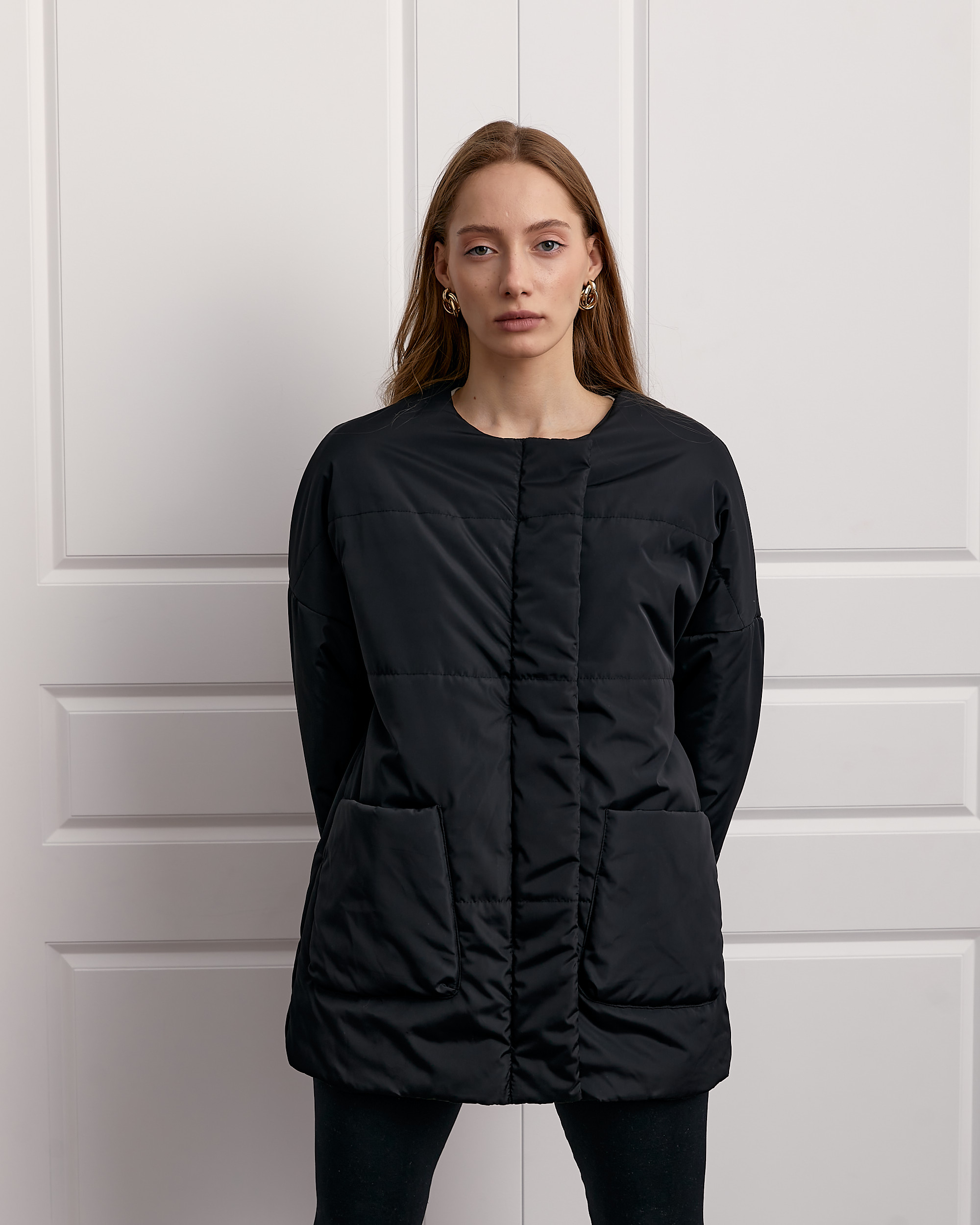 Демісезонна куртка прямого вільного крою, утеплена синтепоном. Модель з спущеною лінією плеча і довгим вшивним рукавом. Виріб з бічними накладними кишенями.